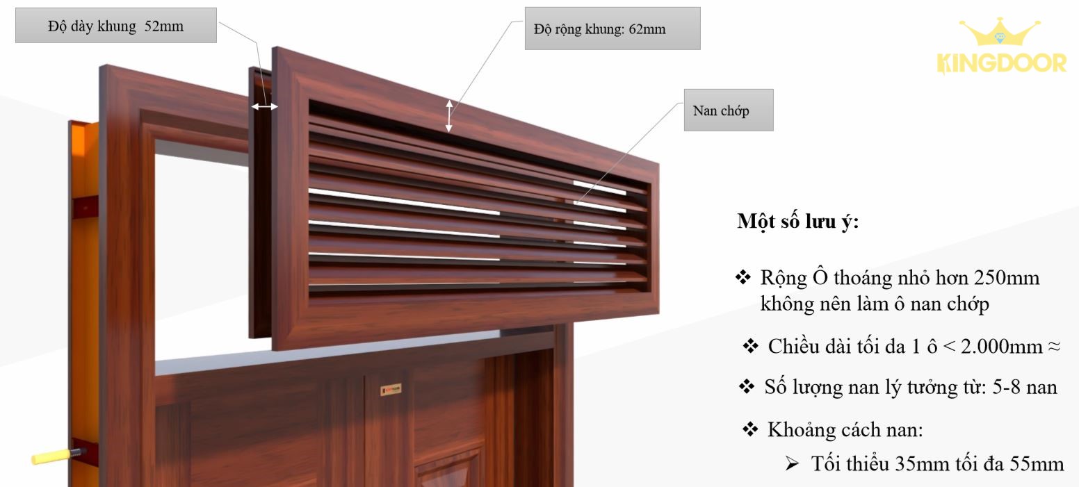 Ô nan chớp: là ô thoáng được làm bằng thép mạ điện, thiết kế theo yêu cầu của khách hàng. Có tác dụng lưu thông khí, giúp thoáng mát hơn.